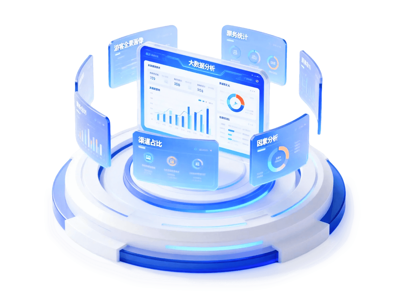 实时汇聚全链路经营数据。通过 3D 数字孪生、动态图表展示客流分布、营收构成、渠道占比。为管理者提供一贯式驾驶舱,让决策更有据。