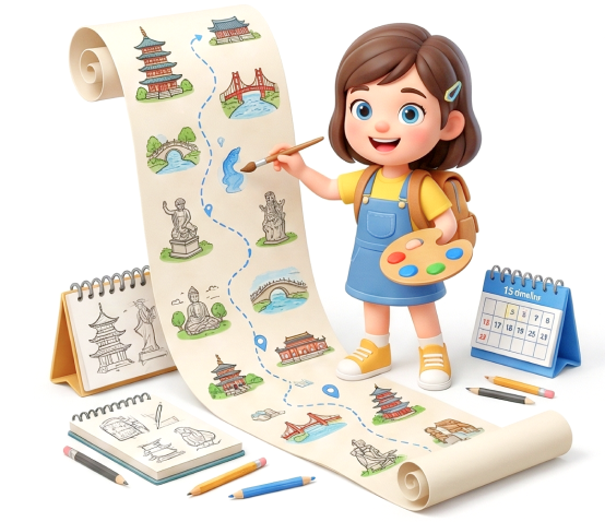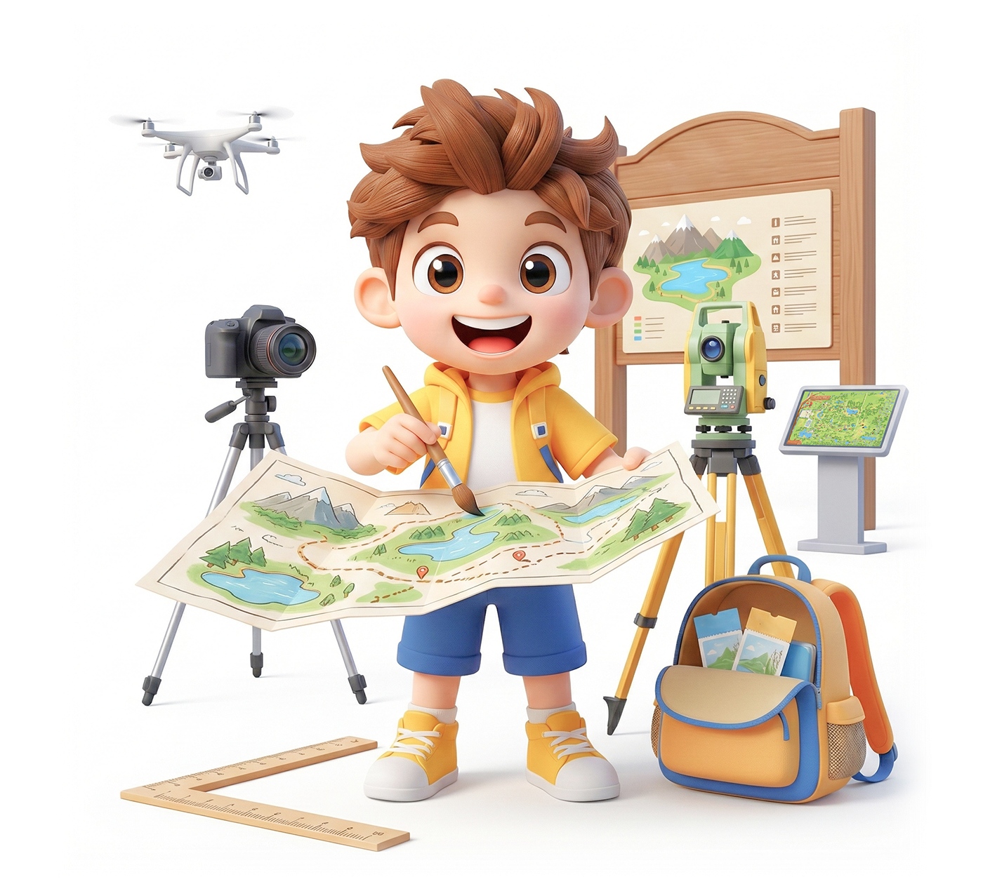 采用Q版卡通插画风格,旨在营造亲切、童真且充满探索欲的视觉氛围