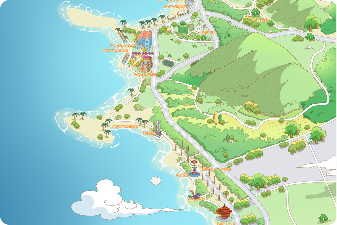 我们的手绘地图不仅仅是静态的艺术品,更是智慧导览系统的核心组成部分。通过与技术平台融合,提供全方位的游客服务。综合导览牌设计