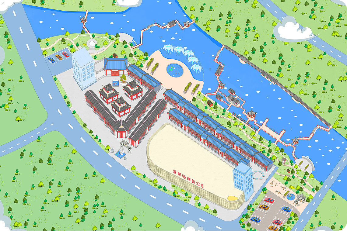 采用了更为理性和规整的数字插画风格,典型的矢量风格导览图